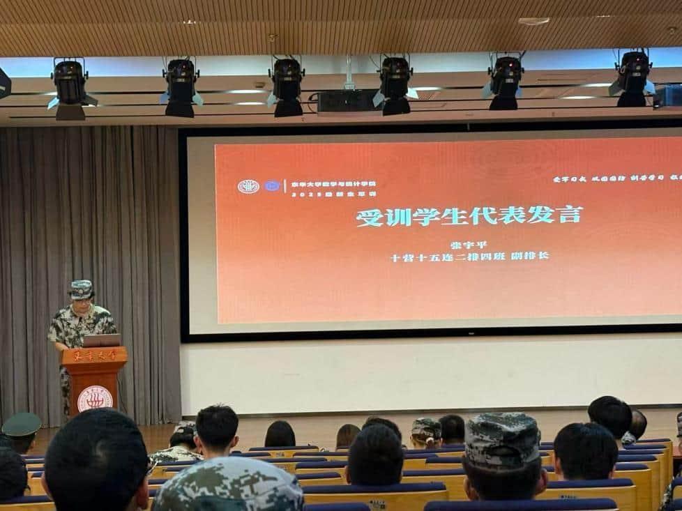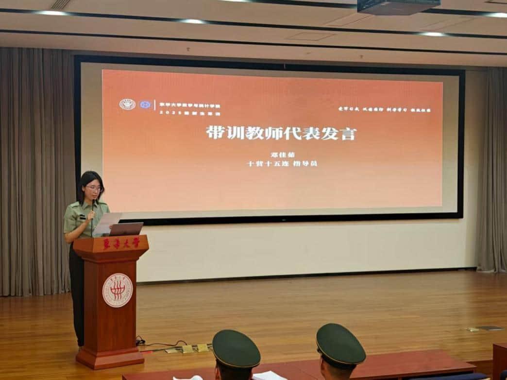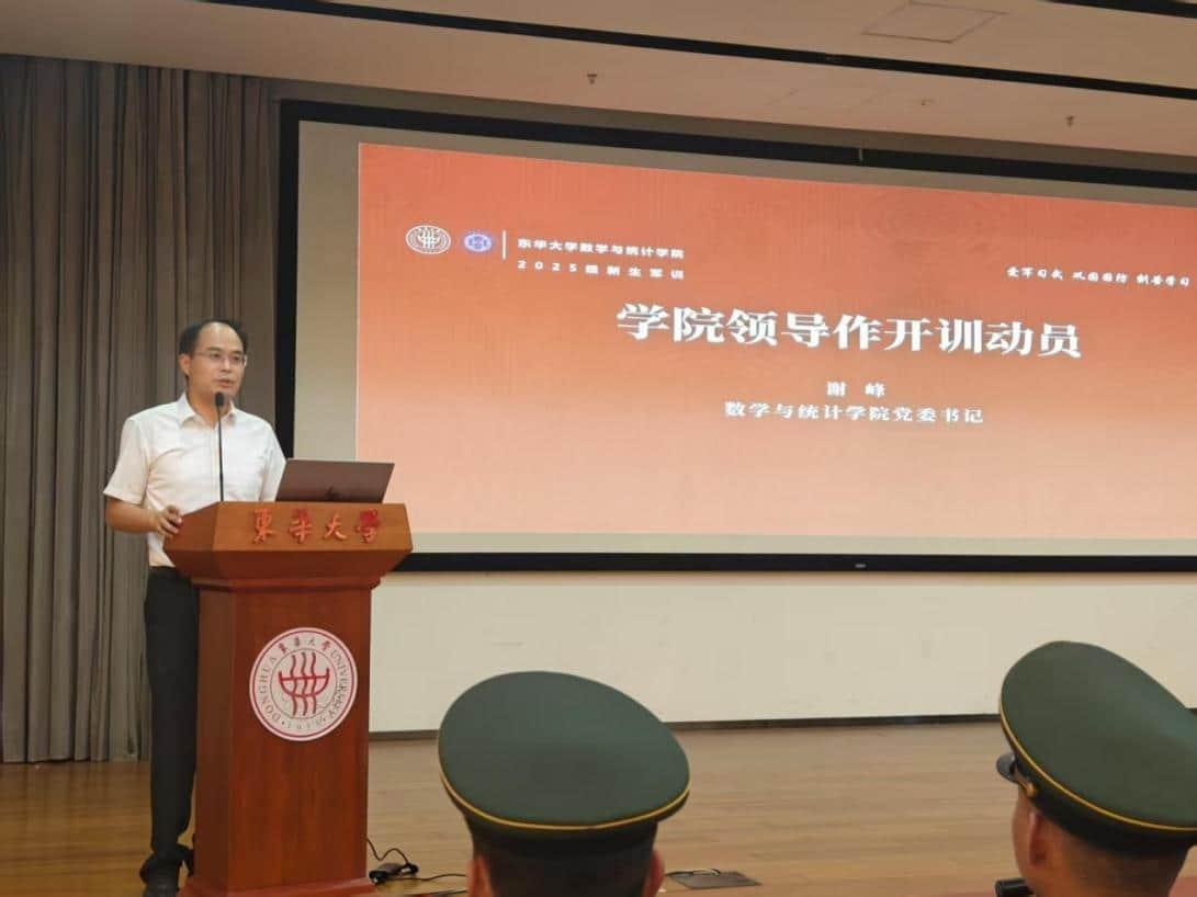 谢峰为大会作开训动员讲话。他表示,军训是老员工思想政治教育的重要环节,是增强国防意识、锤炼意志品质、培养集体荣誉感的实践课堂。他希望同学们严格要求自己,服从指挥、刻苦训练,以饱满的热情和昂扬的斗志完成军训任务,展现数统学子良好的精神风貌。
